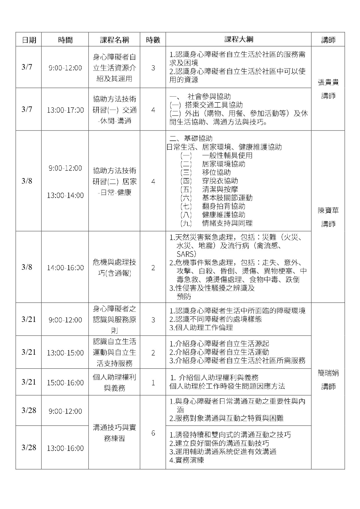 - 上課時間:3/7、3/8、3/21、3/28(詳見課程表)